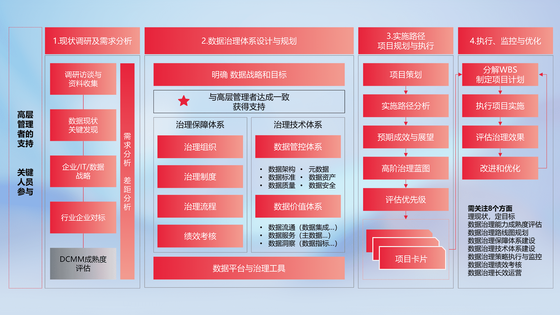 制定并执行统一的数据标准,,,规范数据定义和格式,,消除冗余和不一致性,,,,实现跨部门和跨系统的数据一致性,,,为企业提供标准化的数据基础。。。